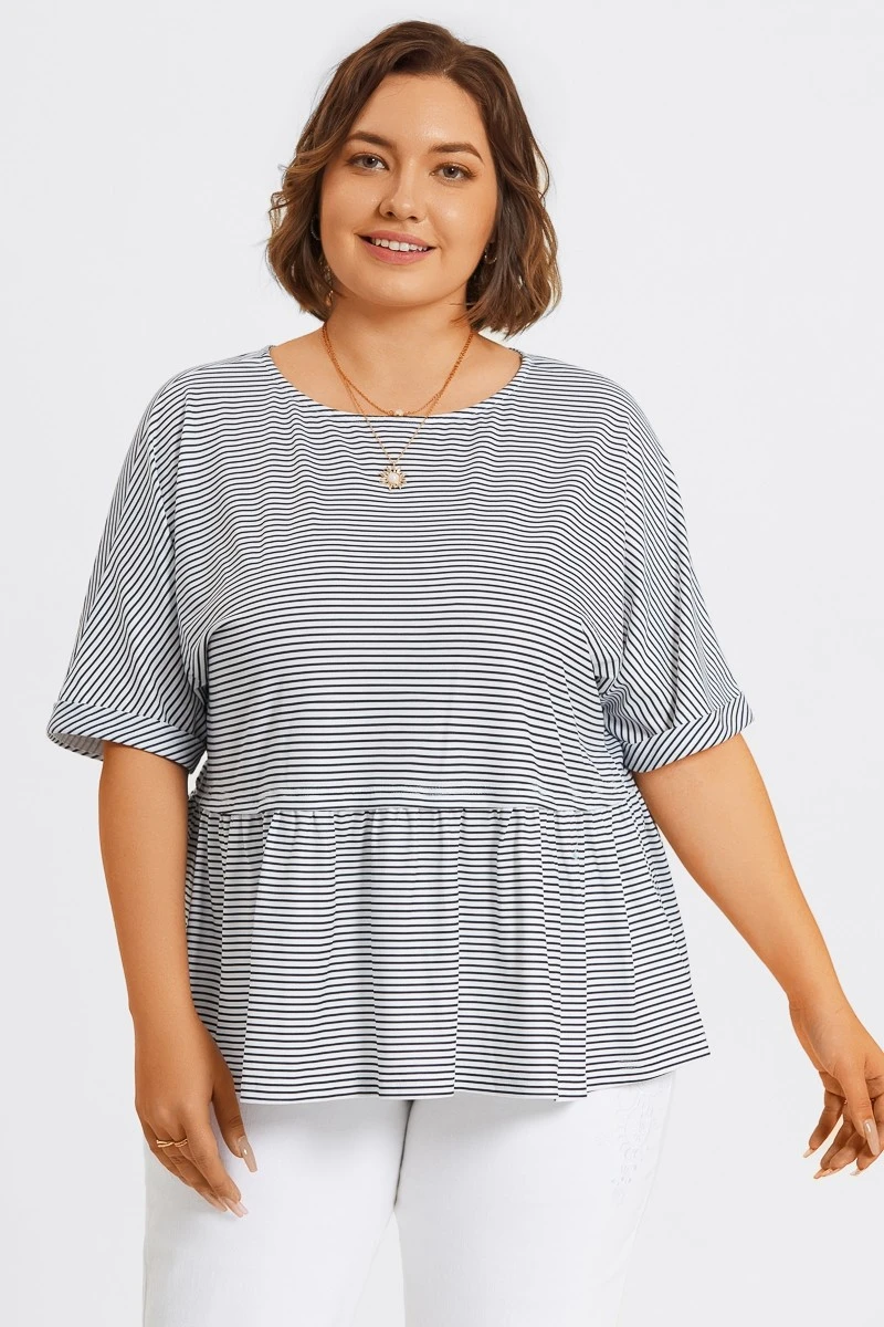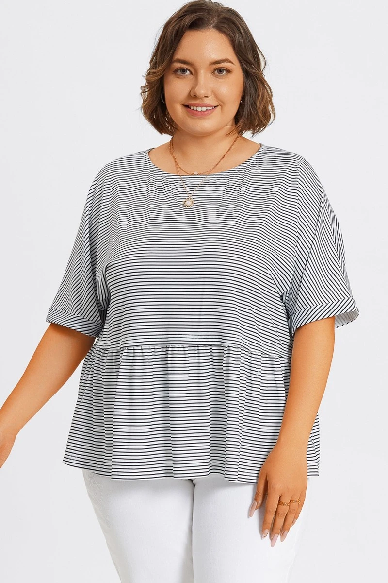 Black & White Stripe Paneled Ruffled Hem Top -Maraluxe Swimwear Shop c topbc036001 6