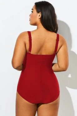 Wine Red Tummy Control Halter One Piece Swimsuit