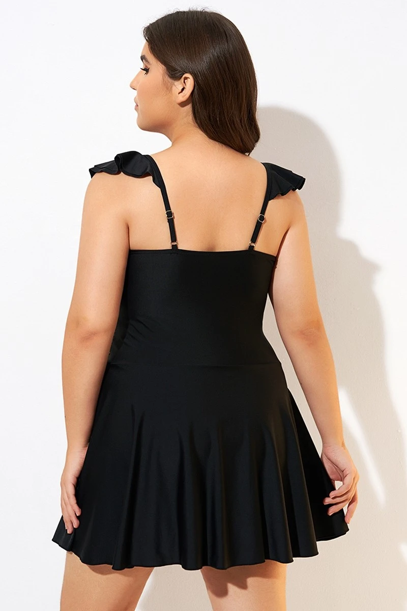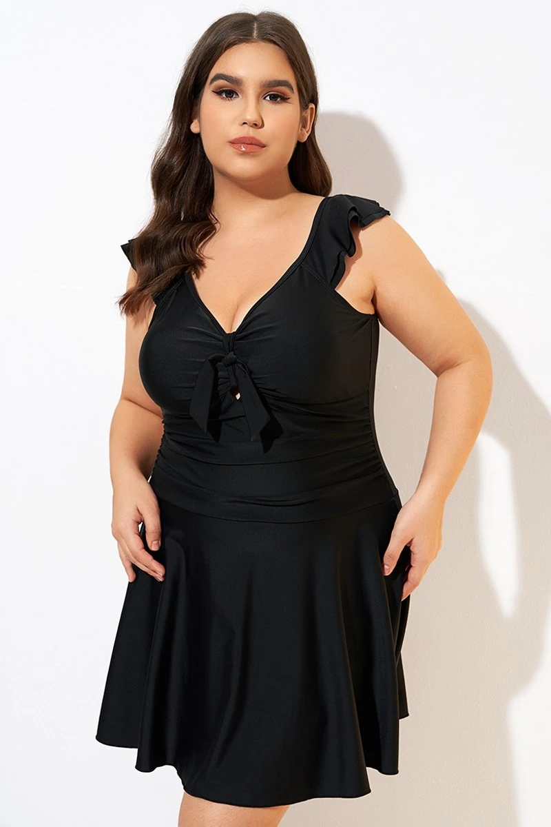 Ruffle Swimsuit Tie Knot Front Ruched Vintage Swimdress